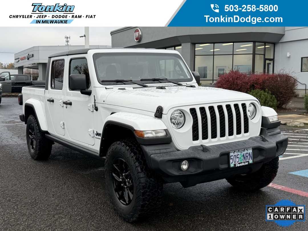 CARFAX One-Owner. Clean CARFAX. 2021 Jeep Gladiator Sport 3.6L V6 24V VVT 6-Speed Manual 4WD 4D Crew Cab Bright White Clearcoat 6-Speed Manual, 240 Amp Alternator, 7.0" Touch Screen Display, Air Conditioning w/Auto Temperature Control, Apple CarPlay, Automatic Headlamps, Black 3-Piece Hard Top, Body Color Fender Flares (2-Piece), Class IV Hitch Receiver, Cluster 7.0" TFT Color Display, Convenience Group, Daytime Running Lamp System, Deep Tint Sunscreen Windows, For More Info, Call 800-643-2112, Freedom Panel Storage Bag, Front 1-Touch Down Power Windows, Google Android Auto, GPS Antenna Input, Heavy-Duty Engine Cooling, Integrated Center Stack Radio, Integrated Voice Command w/Bluetooth, Leather Wrapped Steering Wheel, Normal Duty Plus Suspension, Popular Equipment Package, Power Heated Mirrors, Power Tailgate Lock, Quick Order Package 23S Sport S, Radio: Uconnect 4 w/7" Display, Rear Sliding Window, Rear Window Defroster, Remote Keyless Entry, Security Alarm, SiriusXM Radio Service, SiriusXM Satellite Radio, Speed Sensitive Power Locks, Sport S, Sun Visors w/Illuminated Vanity Mirrors, Technology Group, Trailer Hitch Zoom, Trailer Tow Package, Universal Garage Door Opener, USB Host Flip, 110 mph Vehicle Max Speed Calibration, 3.73 Rear Axle Ratio, 4-Wheel Disc Brakes, 8 Speakers, ABS brakes, Air Conditioning, AM/FM radio, Anti-Lock 4-Wheel Disc Heavy Duty Brakes, Brake assist, Cloth Low-Back Bucket Seats, Compass, Delay-off headlights, Driver door bin, Driver vanity mirror, Dual front impact airbags, Dual front side impact airbags, Electronic Stability Control, Front anti-roll bar, Front Bucket Seats, Front Center Armrest w/Storage, Front fog lights, Front reading lights, Integrated roll-over protection, Low tire pressure warning, MOPAR Spray In Bedliner, No Soft Top, Normal Duty Suspension, Occupant sensing airbag, Outside temperature display, ParkView Rear Back-Up Camera, Passenger door bin, Passenger vanity mirror, Power steering, Radio data system, Radio: Uconnect 3 w/5" Display, Rear anti-roll bar, Rear reading lights, Speed control, Split folding rear seat, Steering wheel mounted audio controls, Tachometer, Telescoping steering wheel, Tilt steering wheel, Traction control, Trip computer, Variably intermittent wipers, Wheels: 17" x 7.5" Black Steel Styled, Wheels: 17" x 7.5" Gloss Black Aluminum, 6-Speed Manual, 240 Amp Alternator, 7.0" Touch Screen Display, Air Conditioning w/Auto Temperature Control, Apple CarPlay, Automatic Headlamps, Black 3-Piece Hard Top, Body Color Fender Flares (2-Piece), Class IV Hitch Receiver, Cluster 7.0" TFT Color Display, Convenience Group, Daytime Running Lamp System, Deep Tint Sunscreen Windows, For More Info, Call 800-643-2112, Freedom Panel Storage Bag, Front 1-Touch Down Power Windows, Google Android Auto, GPS Antenna Input, Heavy-Duty Engine Cooling, Integrated Center Stack Radio, Integrated Voice Command w/Bluetooth, Leather Wrapped Steering Wheel, Normal Duty Plus Suspension, Popular Equipment Package, Power Heated Mirrors, Power Tailgate Lock, Quick Order Package 23S Sport S, Radio: Uconnect 4 w/7" Display, Rear Sliding Window, Rear Window Defroster, Remote Keyless Entry, Security Alarm, SiriusXM Radio Service, SiriusXM Satellite Radio, Speed Sensitive Power Locks, Sport S, Sun Visors w/Illuminated Vanity Mirrors, Technology Group, Trailer Hitch Zoom, Trailer Tow Package, Universal Garage Door Opener, USB Host Flip. ***Call (503) 258-5800 to speak to a Sales Professional*** Come in to Ron Tonkin Chrysler Jeep Dodge Ram Fiat in Milwaukie to test drive today! DL0087.